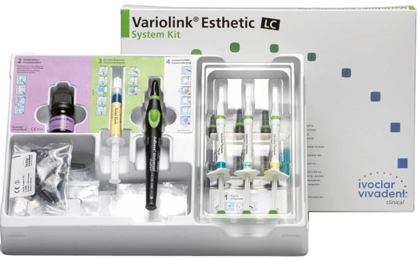 Variolink Esthetic LC (Light Curing) dán vĩnh viễn các phục hình có độ dày rất thấp như Inlays, onlays, veneers làm bằng sứ thủy tinh, phục hình composite và sứ Lithium disilicate. Chỉ dành cho phục hình với độ dày vật liệu mỏng < 2 mm và độ trong mờ phù hợp (ví dụ IPS E.max Press HT).